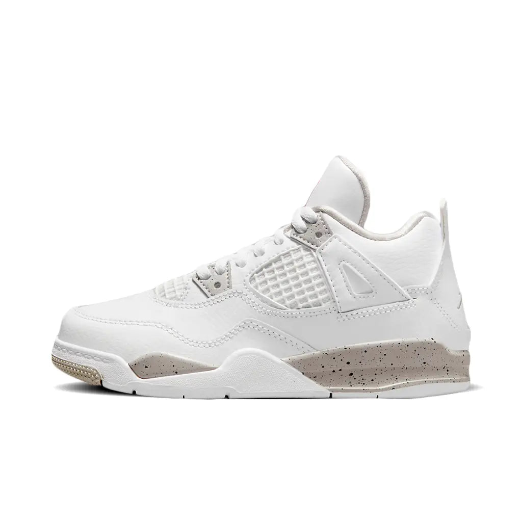 Clean, versatile, and highly sought after, the Nike Air Jordan 4 Retro “White Oreo” delivers a timeless look on the iconic Air Jordan 4 silhouette. Featuring a premium white leather upper with subtle speckled cement grey accents, this colourway offers a perfect balance of classic Jordan heritage and modern streetwear appeal.